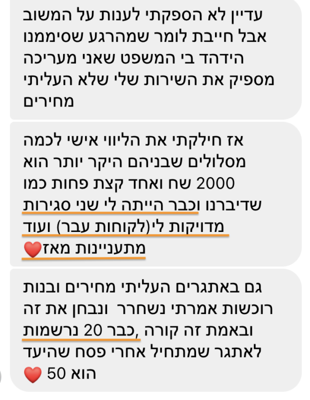 בפגישה נדייק את המשפך השיווקי הקיים מבחינת מסרים ופלואו, כדי למקסם תוצאות ורווחים.