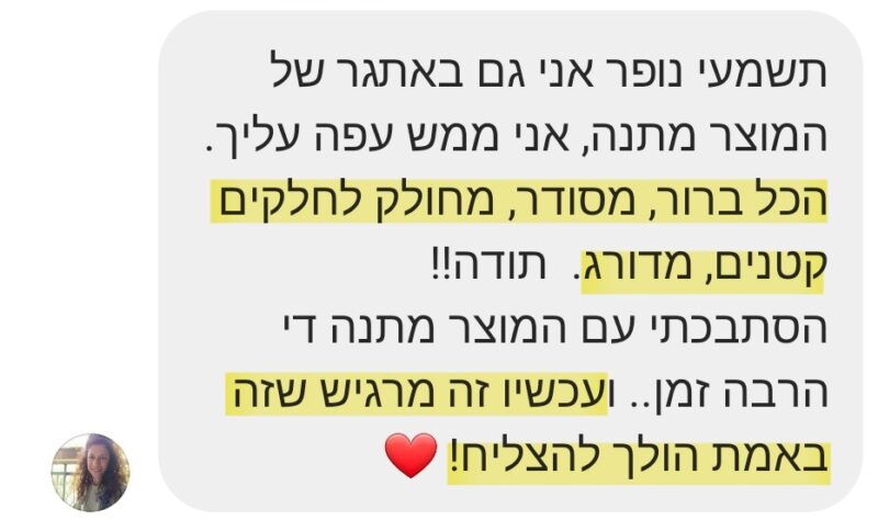 כולל הסברים, דוגמאות, והנחיות מדויקות לביצוע. ככה נתקדם שלב אחר שלב בבניית מוצר המתנה שלכם.