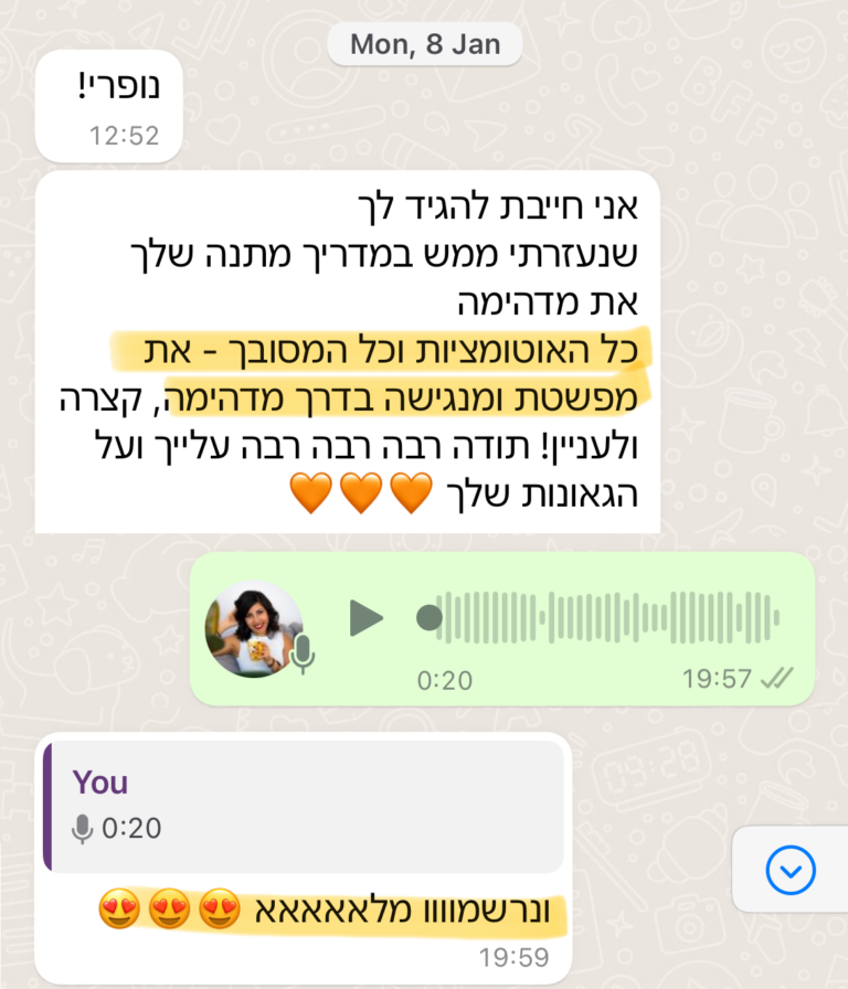המיילים נשארים אצלכם. תוכלו לקרוא ולצפות בהם בזמן ובקצב שנוח לכם, ולחזור אליהם בכל פעם שאתם צריכים ריענון.
